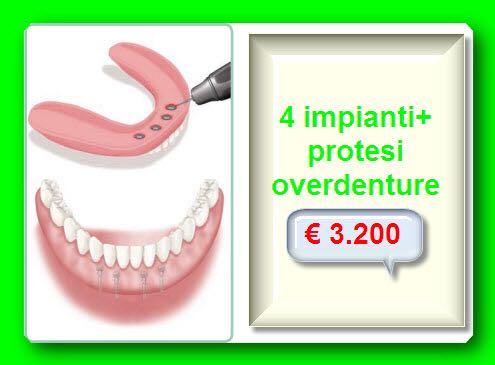 Protesi Overdenture con quattro impianti italiani Leone € 3200 ad arcata.